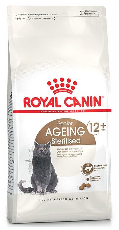 Лучшие цены. Royal Canin Sterilised Ageing 12+ - корм сухой полнорационный сбалансированный для стерилизованных стареющих кошек в возрасте старше 12 лет 400г. Благодаря умеренному содержанию фосфора ROYAL CANIN® Ageing Sterilised 12+ поддерживает функцию почек и здоровье мочевыделительной системы пожилых кошек. Поддерживает здоровье и активность стареющих кошек. Помогает поддерживать оптимальный вес. Поддерживает функцию почек. 100% полнорационное и сбалансированное питание. Магазины в вашем городе.