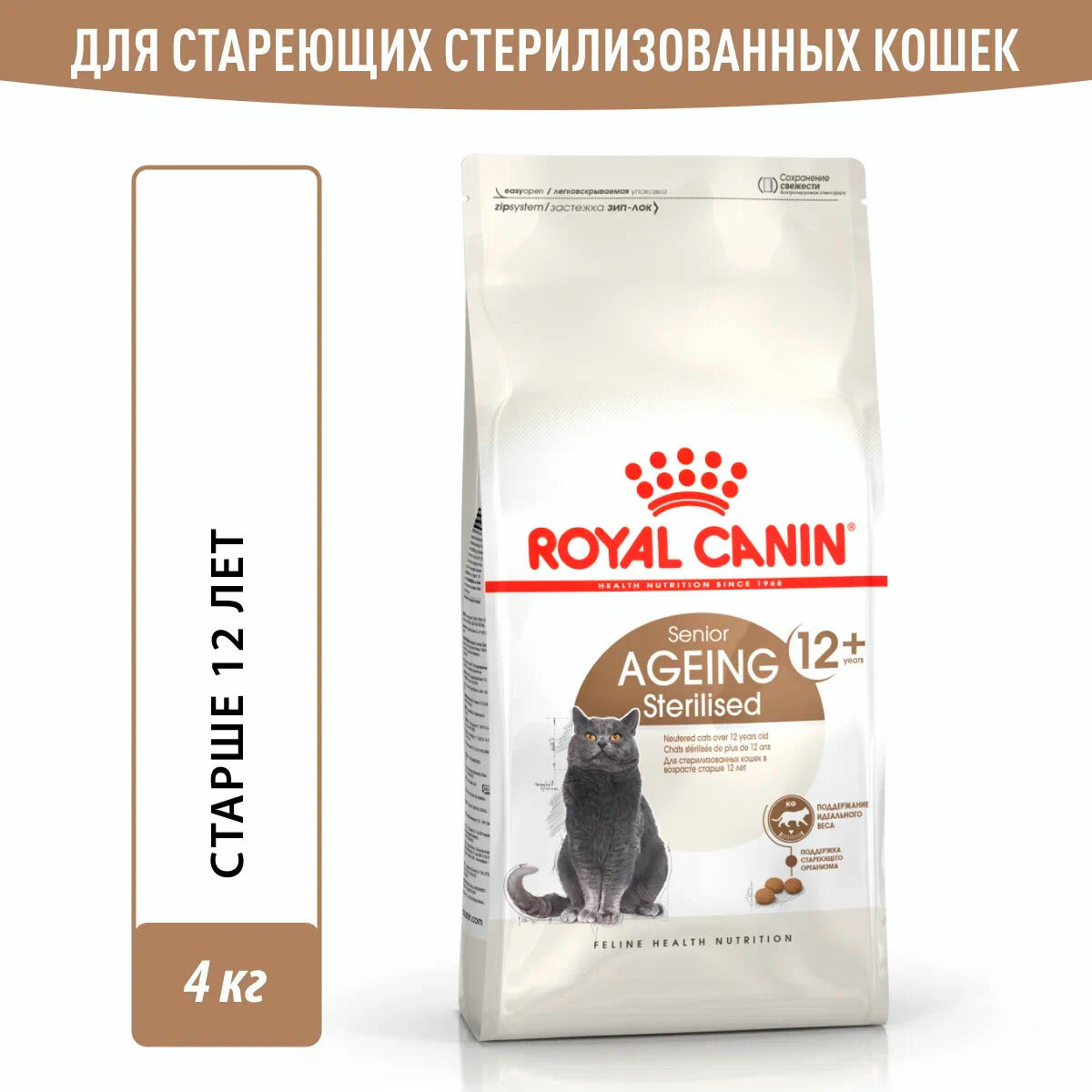 Корм для кошек ROYAL CANIN AGEING STERILISED 12+ для пожилых кастрированных котов и стерилизованных кошек старше 12 лет (4 + 4 кг)