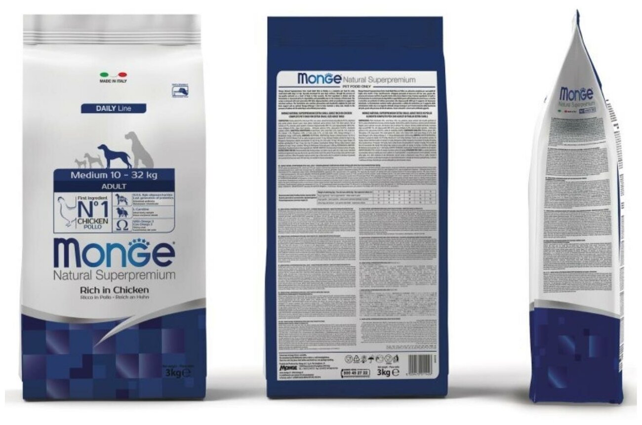 Сухой корм для собак Monge Daily Line, курица 3 кг (для средних пород)