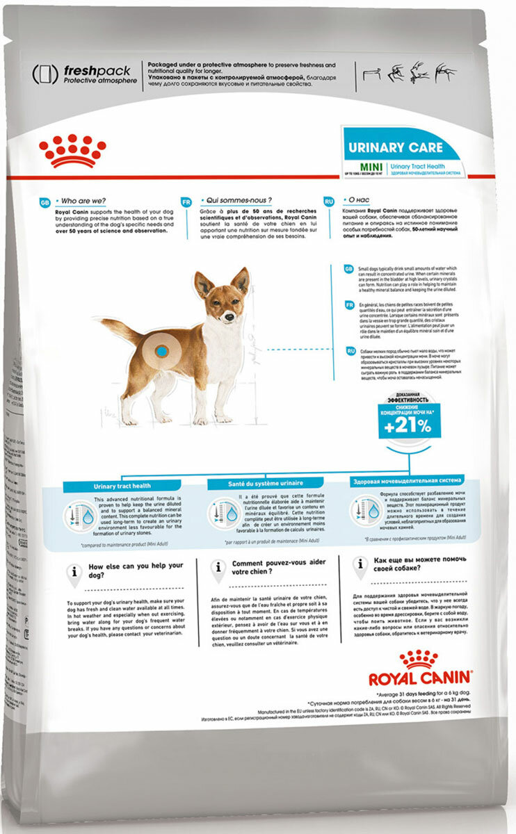 Сухой корм ROYAL CANIN MINI URINARY CARE для взрослых собак маленьких пород при мочекаменной болезни (1 + 1 кг)