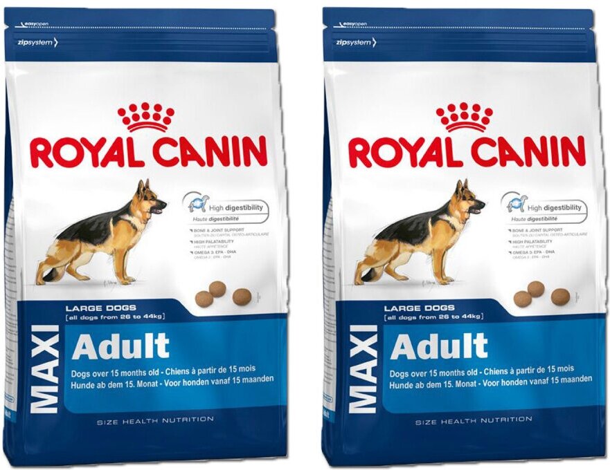 Корм сухой Royal Canin Maxi Adult для взрослых собак крупных пород (от 26 до 44 кг), от 15 месяцев до 5 лет, 15 кг