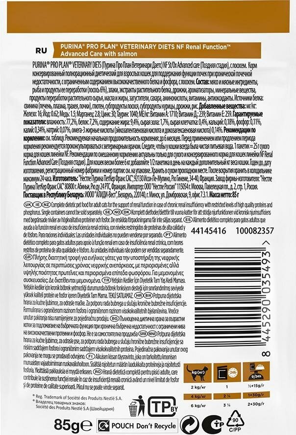 Влажный корм для кошек Purina Pro Plan Veterinary Diets NF Renal Function Advanced Care, поздняя стадия почечной недостаточности, лосось, 40 шт. х85г
