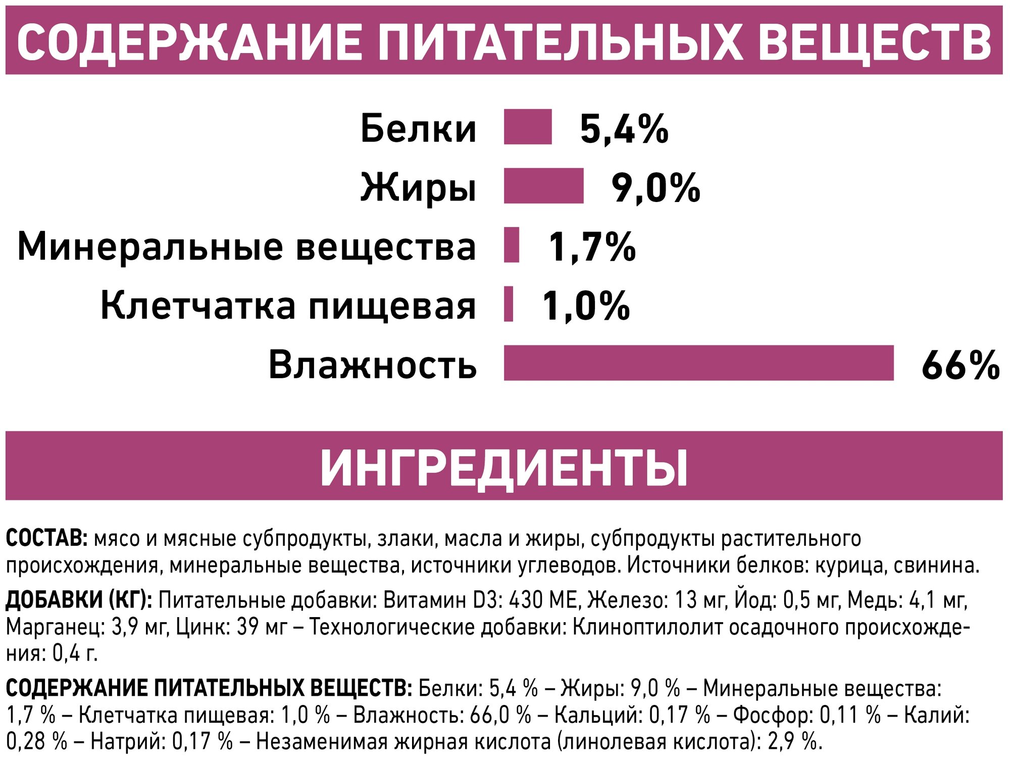 | Ингредиенты | мясо, продукты животного/растительного происхождения, злаки, масла |