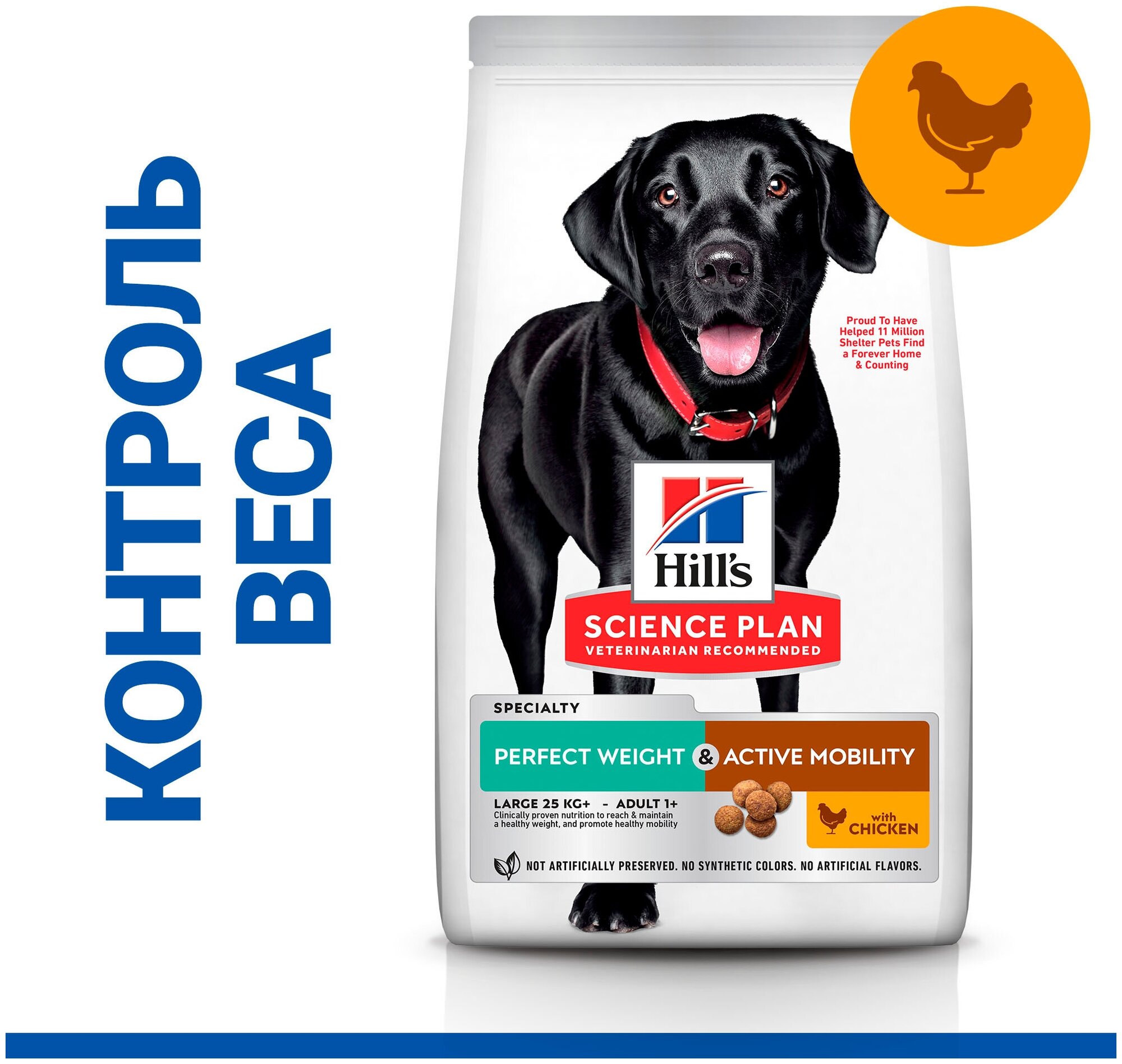 Корм для собак Hills Science Plan Perfect Weight & Active Mobility сухой корм для собак крупных пород для снижения веса и поддержания подвижности, с курицей - 12 кг