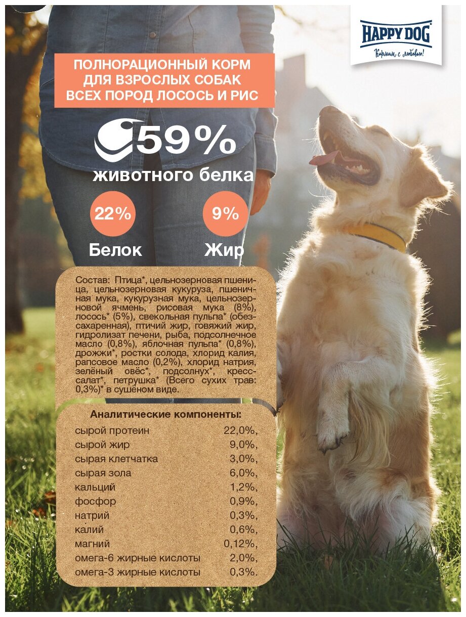 Корм для собак Сухой корм Happy Dog NaturCroq Adult Salmon and Rice для собак всех пород с лососем и рисом 11 кг