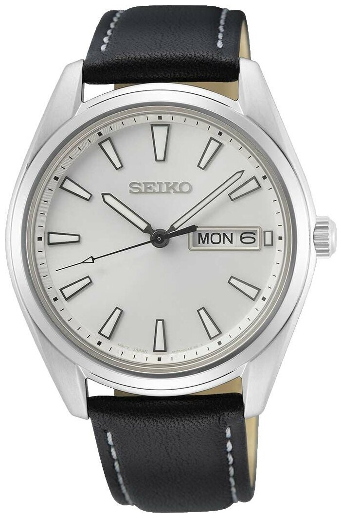Лучшие цены. Мужские наручные часы Seiko с круглым корпусом и кожаным ремешком. Присутствует апертура даты и дня недели. Ремешок с классической застежкой. Магазины в вашем городе.