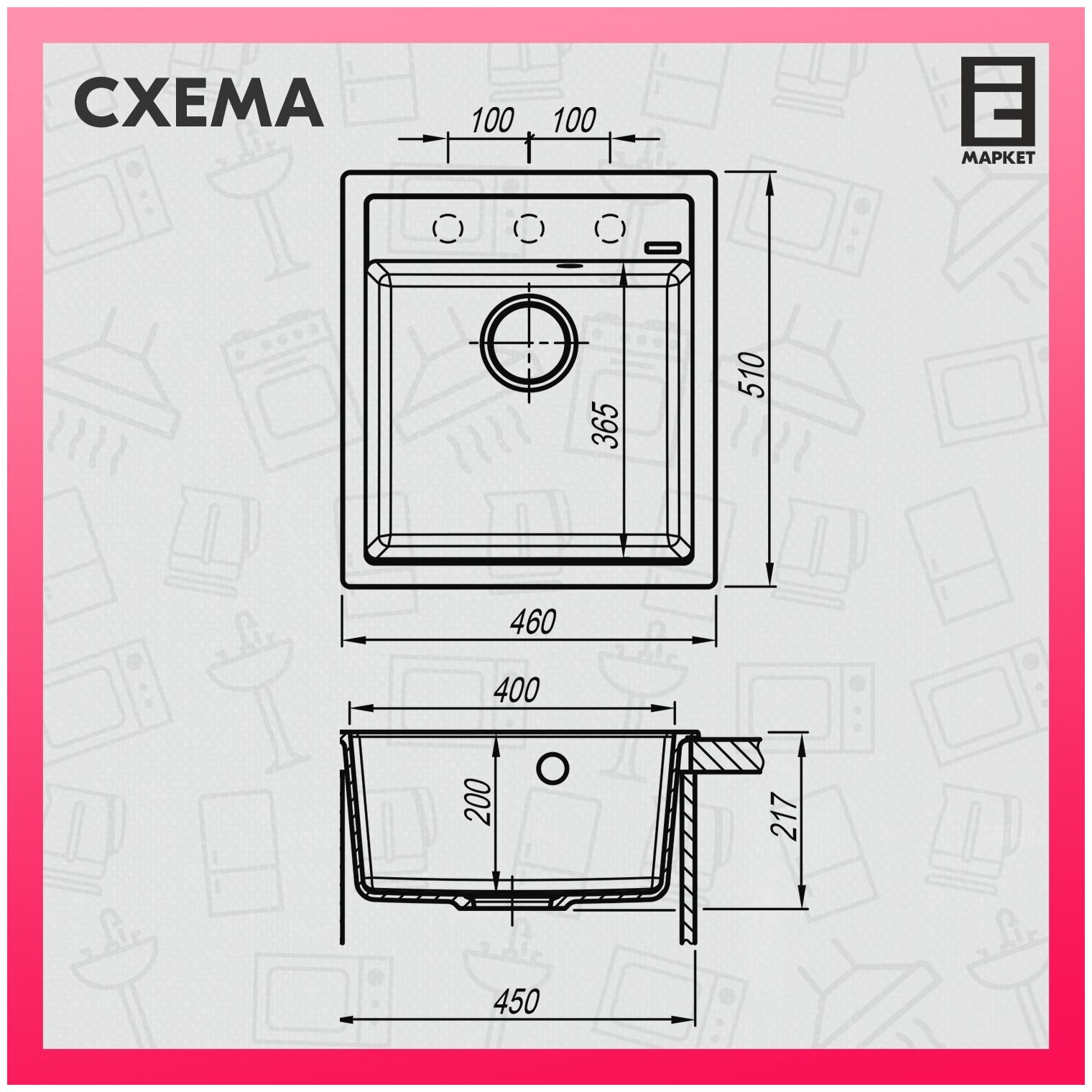 | Размеры основной чаши (ДхШхГ) | 400x400x175 мм |