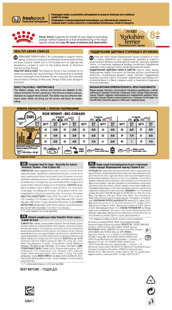 Корм для собак ROYAL CANIN YORKSHIRE TERRIER ADULT 8+ для пожилых собак йоркширский терьер старше 8 лет (0,5 кг х 10 шт)