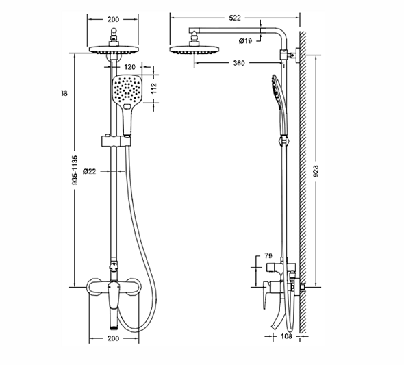 | Комплектация | ручной душ (душевая лейка) / верхний душ (тропический) / смеситель / стойка / штанга / душевой шланг / крепление ручного душа |