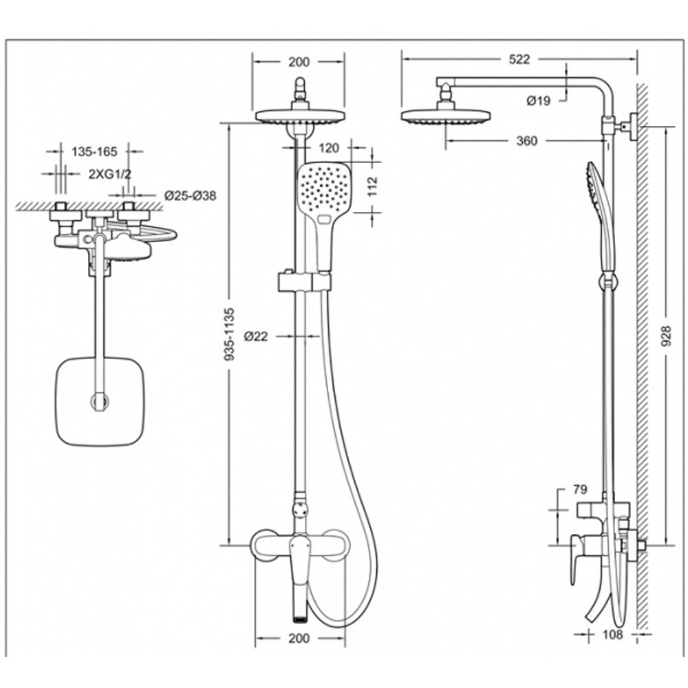 | Комплектация | ручной душ (душевая лейка) / верхний душ (тропический) / смеситель / стойка / штанга / душевой шланг / крепление ручного душа |