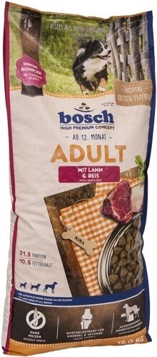 Сухой корм для собак Bosch Adult, со средним уровнем активности, ягненок, с рисом 1 уп. х 1 шт. х 15 кг (для средних и крупных пород)
