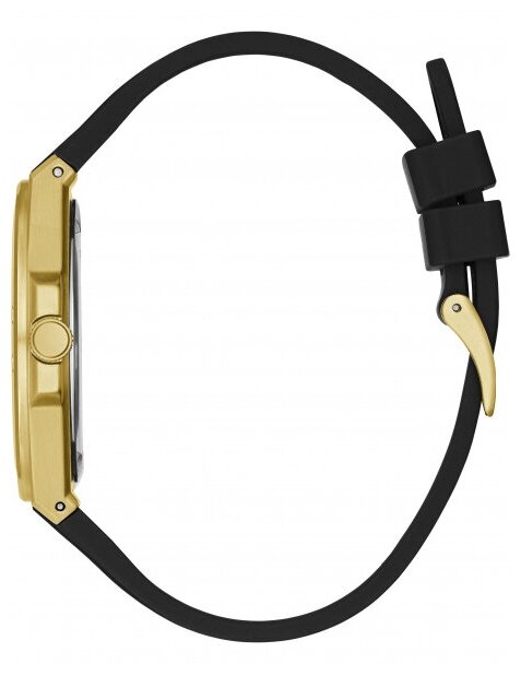 Лучшие цены. • Точный кварцевый механизм. • Центральные часовая, минутная и секундная стрелки. • Точность хода не хуже от -10 до +20 сек. в месяц. • Окошко даты с увеличительным стеклом. • Минеральное стекло устойчивое к возникновению царапин. • Светонакопительный состав на стрелках и маркерах часа. • Корпус из стального сплава 316L с высокими антикоррозийными свойствами и PVD покрытием цвета желтого золота. • Водозащита до 5 АТМ. • Силиконовый ремешок черного цвета. • Ширина ремешка 24 мм. Магазины в вашем городе.