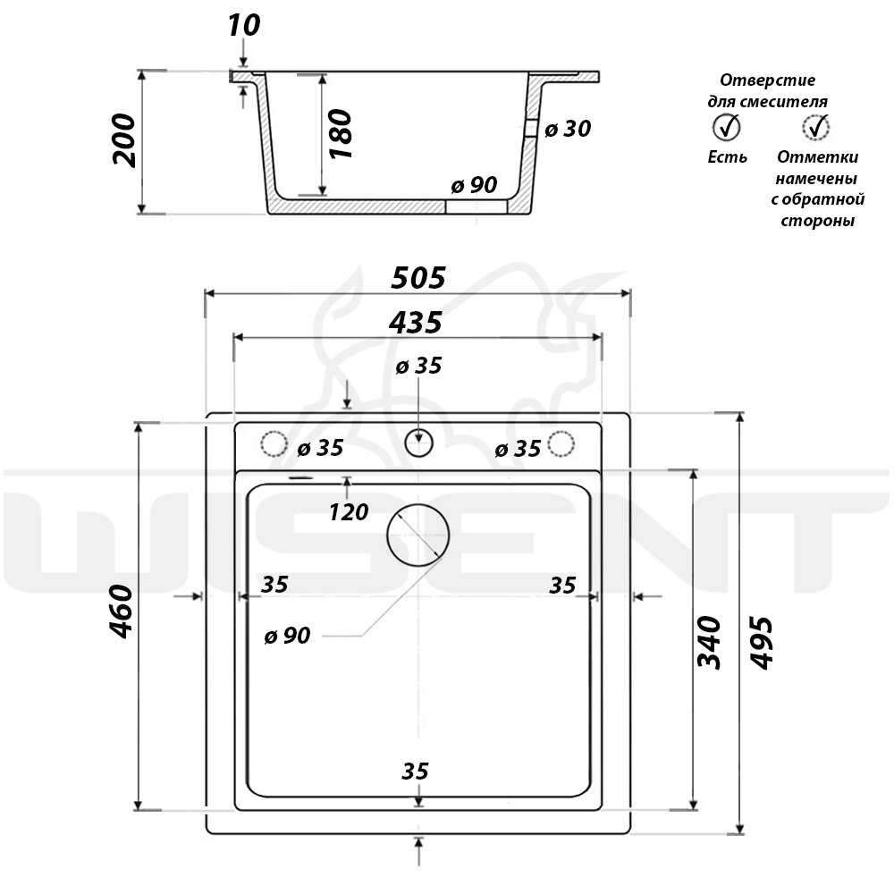 Кухонная мойка Gerhans A 11 22 Черный /беларусь/ 510х505 мм А11-22 .