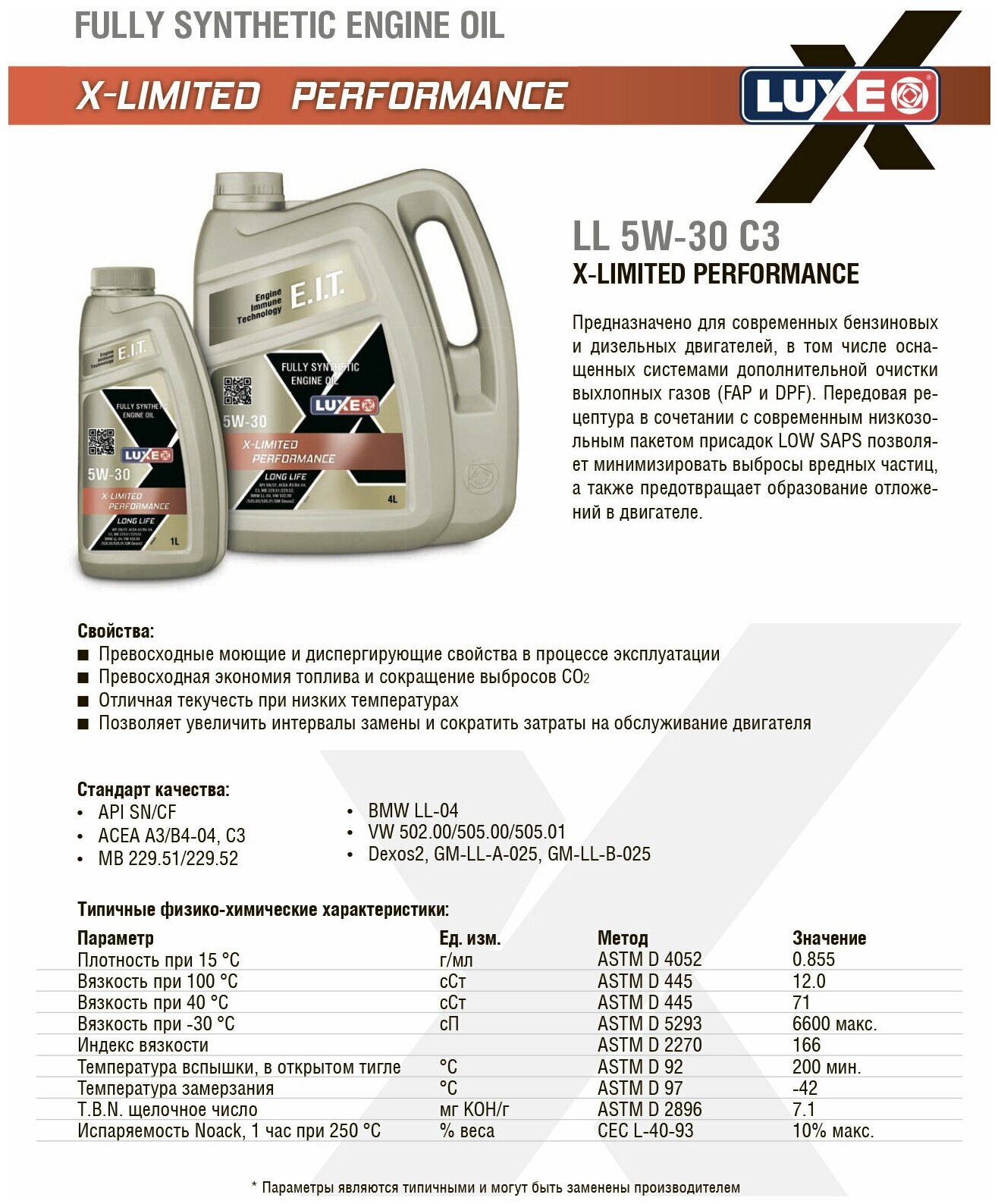 Моторные масла Масло моторное 5w-30 X-LIMITED PERFORMANCE LL С3 4 л LUXE 30363