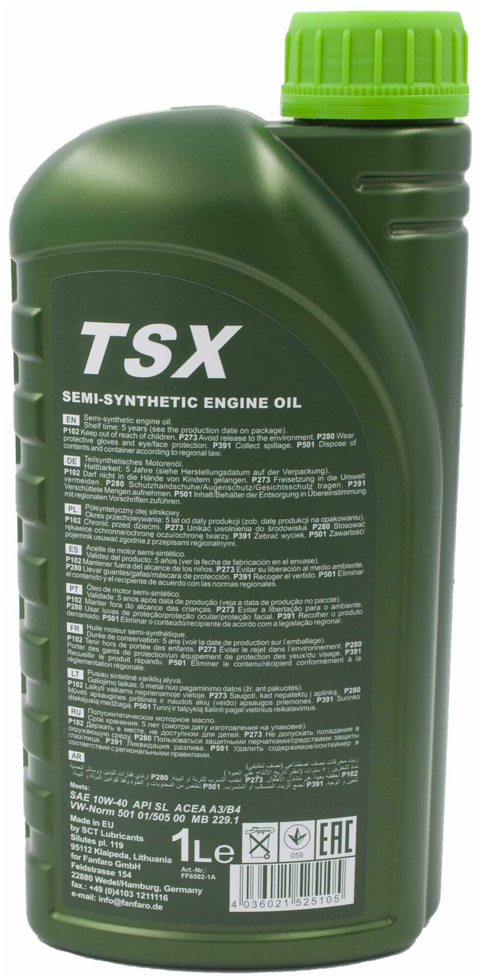 Полусинтетическое моторное масло FANFARO TSX SAE 10W40 API SL/CF ACEA A3/B4 1л.
