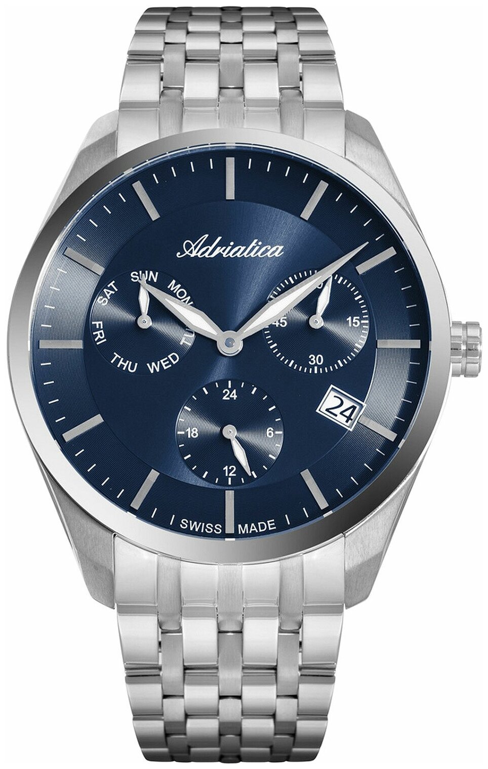 Лучшие цены. Мужские кварцевые наручные часы на стальном браслете. Швейцарский часовой бренд «Adriatica» является воплощением современных произведений часового искусства. Объединяя традиции качества и надежности с оригинальностью и элегантностью дизайна, производители часов создают великолепные модели, ориентированные на разные стили для своих покупателей, обеспечивая широкий выбор товара по конкурентоспособной цене. Магазины в вашем городе.