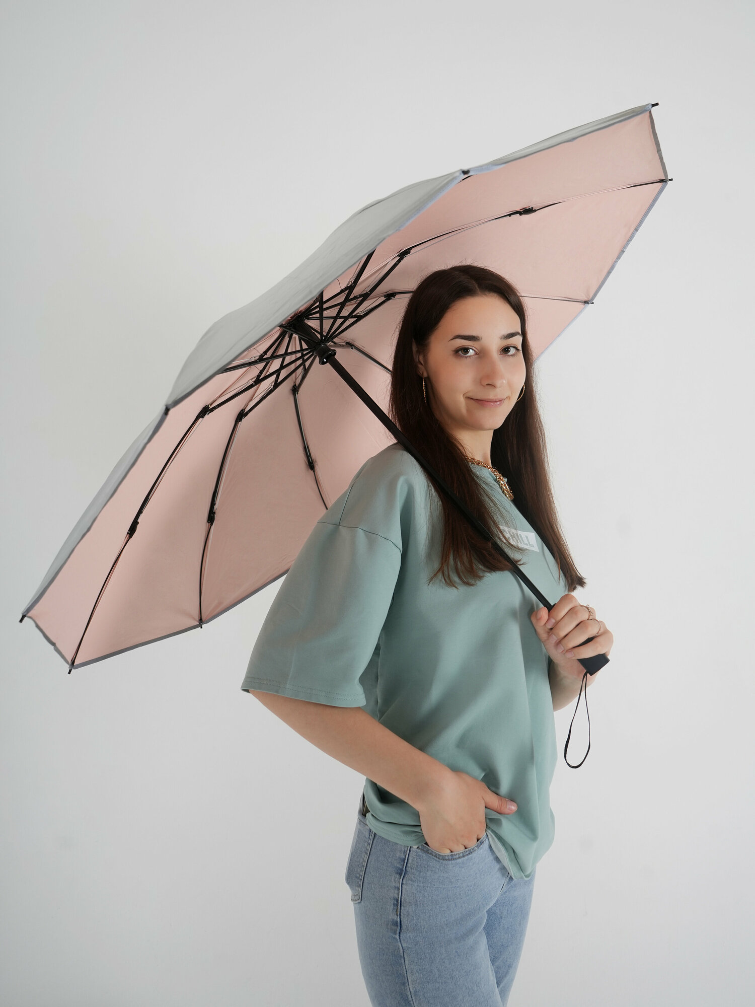 Зонт Зонт автомат двухсторонний обратного сложения розовый-серебристый