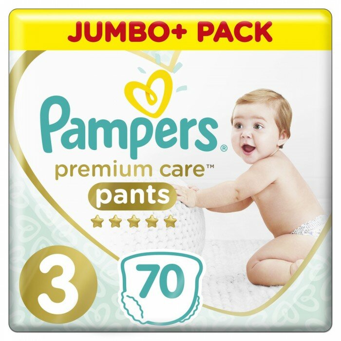 Лучшие цены. Pampers Подгузники-трусики Premium Care 3 р. (6-11 кг) 70 шт. Забудьте о неудобствах смены подгузника, ведь теперь есть трусики Pampers Premium Care. Благодаря мягкому эластичному пояску трусики легко надеваются, даже если ваш малыш активно двигается. Они изготовлены из мягких, как пух, материалов, обеспечивающих самое нежное прикосновение к коже от Pampers. Кроме того, трусики обеспечивают ребенку комфорт до 12 часов, гарантируя сухость от Pampers. Магазины в вашем городе.