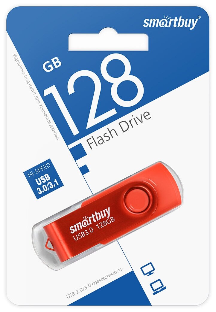 Лучшие цены. Флешка Smartbuy Twist, 128 Гб, USB 3.1, чт до 70 Мб/с, зап до 40 Мб/с, красная -Вес: 16 г. -Фасовка: 1 шт -Тип индивидуальной упаковки: Блистер -Длина упаковки: 12.5 -Высота упаковки: 1 -Ширина упаковки: 8.5 -Объем упаковки: 0.106 -Объем продукта: 0.1173 -Объем бокса: 3.52 -Материал: Металл, пластик -Гарантийный срок, мес: 12 -Температурное ограничение: Нет. Магазины в вашем городе.