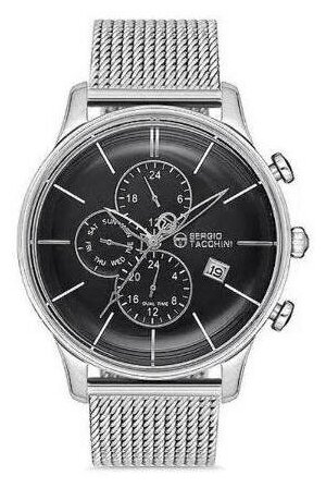 Лучшие цены. Мужские повседневные наручные часы Sergio Tacchini Coastlife ST.1.10150-2 Корпус: нержавеющая сталь, цвет серебристый, размер Ø45 мм, водозащита 5 ATM Браслет: нержавеющая сталь, цвет серебристый, размер 22 мм Черный циферблат, индексы, стекло минеральное, особенности: дата, день недели, второе время Механизм: кварцевый аналоговый, калибр JP15-3. Магазины в вашем городе.
