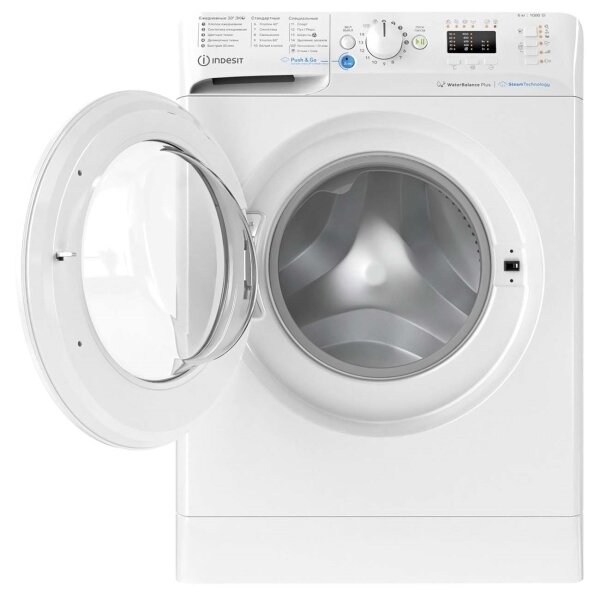 Лучшие цены. Узкая стиральная машина Indesit BWSA 61051 WWV Ru рассчитана на максимальную загрузку 6 кг. В ней установлены пластиковый бак и стандартный мотор. Потребляемая мощность — 1850 Вт. Скорость отжима — до 1000 об/мин. Энергопотребление за цикл — 1,02 кВтч, расход воды — 49 л. Уровень шума — не более 76 дБ. Люк диаметром 30,5 см сделан из пластика и стекла. Для безопасности предусмотрены защита от детей и контроль пенообразования. Тип управления — электронный. Магазины в вашем городе.