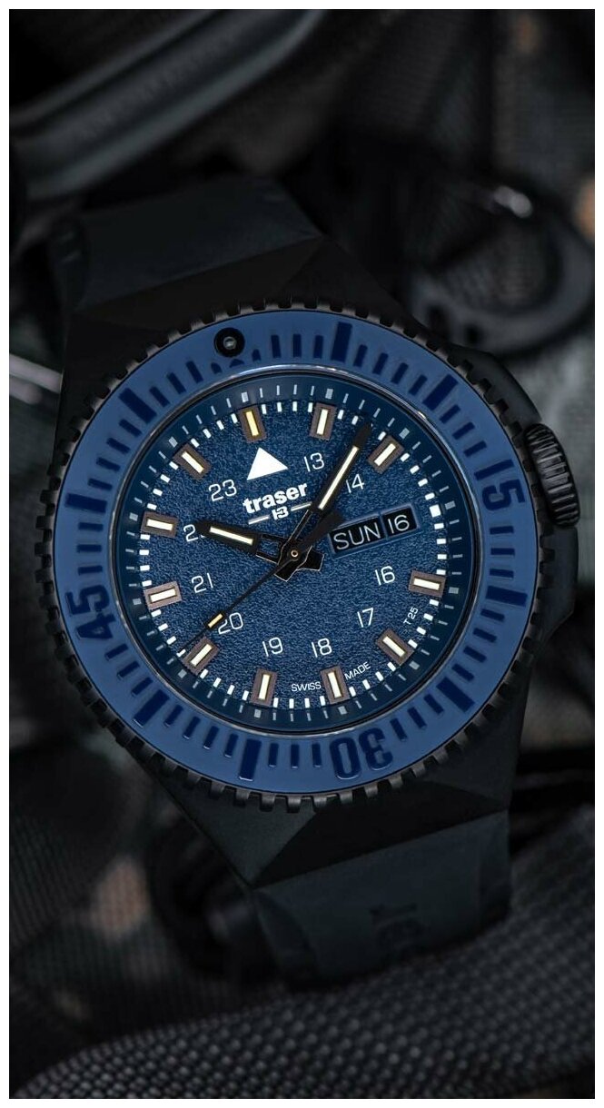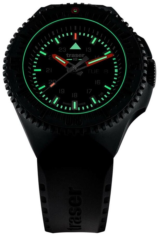 Лучшие цены. Р69 Black Stealth. 12-ти и 24-х часовой формат времени. Сочетание двух подсветок Superluminova и TrigaLight обеспечивают безупречную читаемость циферблата при любых условиях освещения. Преимущество TrigaLight подсветки на основе тритиевого газа заключается в том, что она не тускнеет в течение длительного использования (ресурс до 25 лет). Метки в виде штрихов. Окошко даты и дня недели. Вращающийся безель с керамической вставкой. Завинчивающаяся заводная головка. Магазины в вашем городе.