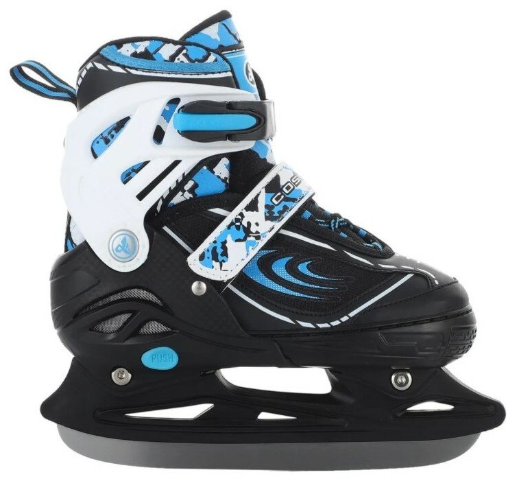 Лучшие цены. Высококачественные современные коньки прекрасно подходят для взрослых и детей именно благодаря своей универсальной раздвижной конструкции с надежным кнопочным фиксатором. Раздвижной механизм позволяет настраивать коньки на 4 разных размера. Внешний ботинок коньков выполнен из морозостойкого высокопрочного пластика, имеет высокую степень устойчивости к износу и механическим повреждениям. Внутренний ботинок анатомической формы с мягкой стелькой из пеноматериала обеспечивает комфорт во время катания. Магазины в вашем городе.