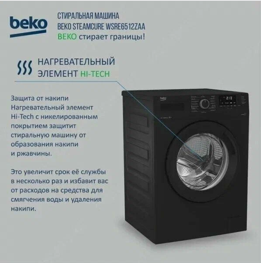 Стиральная машина Beko WSRE6512ZAA, черный 19 671 ₽ Подробнее