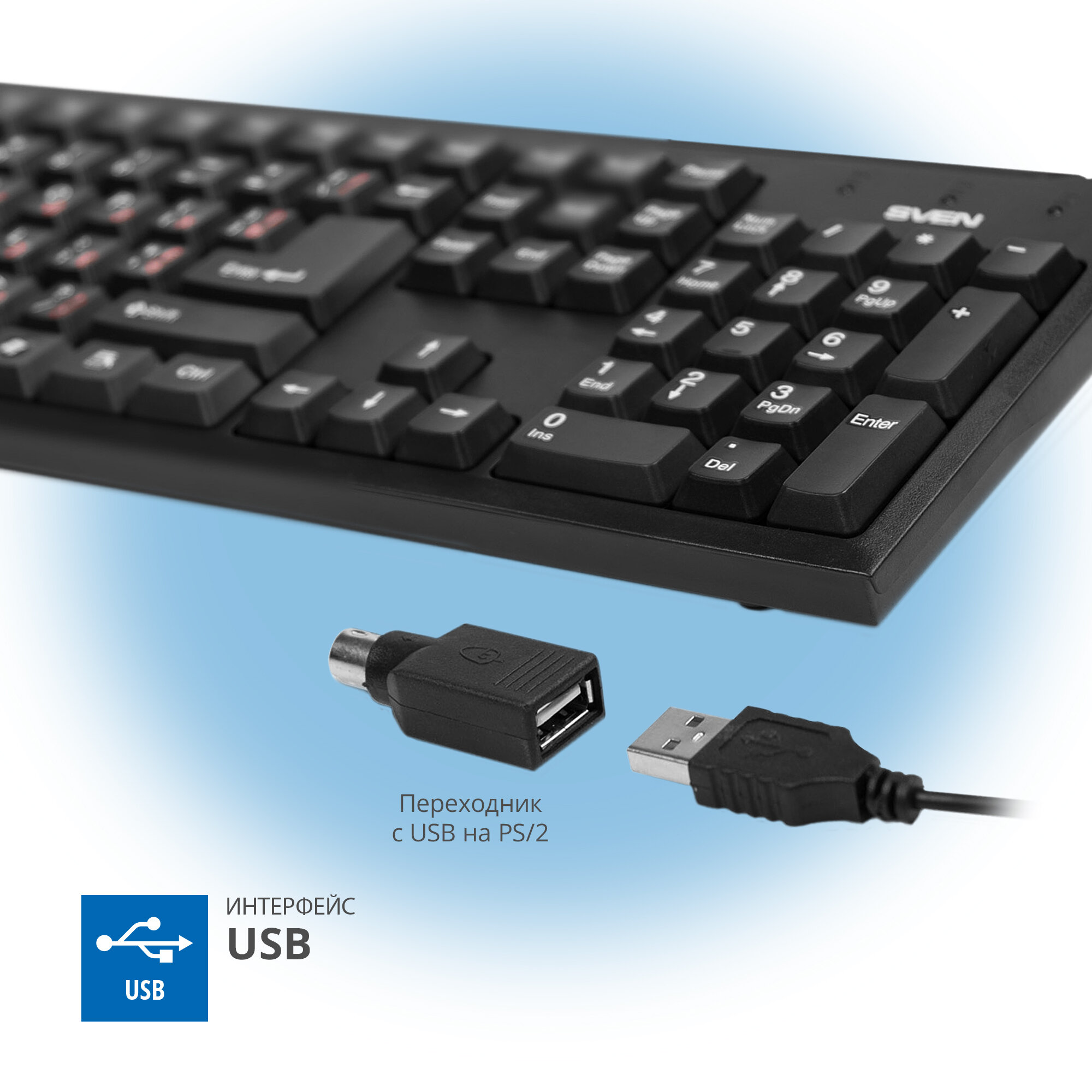 Клавиатура Sven Standard 303 Keyboard, USB+PS/2, черная, проводная