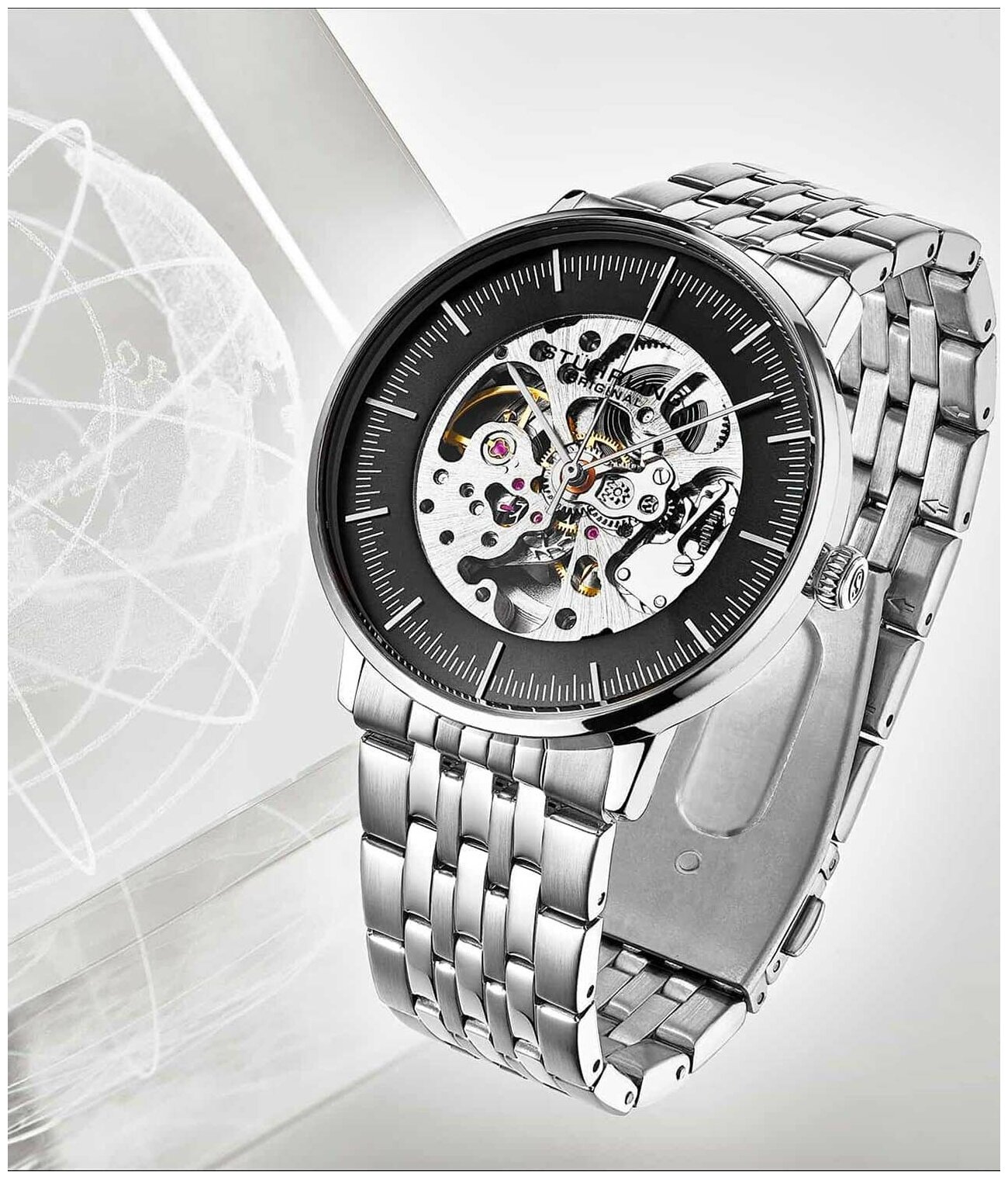 Лучшие цены. Мужские часы. Коллекция Legacy. Механические часы с открытым циферблатом станут вашим фаворитом среди аксессуаров. Тип механизма: механический с автоподзаводом. Корпус: металл. Циферблат: черный, серебристый. Браслет: стальной. Водозащита: 30WR. Стекло: Krysterna. Габаритные размеры: D 42мм, толщина 9,75мм, ширина браслета 22мм. Магазины в вашем городе.