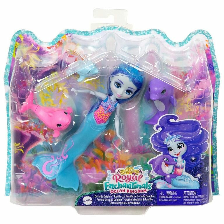 ROYAL ENCHANTIMALS DORINDA DOLPHIN DOLL WITH FAMILY HCF72