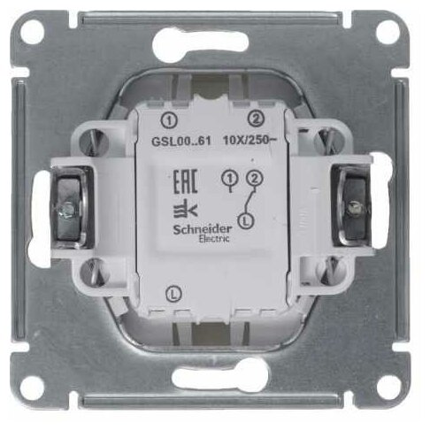 Лучшие цены. Электрический выключатель Glossa Schneider Electric (Глосса Шнайдер Электрик) GSL001261 скрытой установки. Выключатель проходной может быть использован в системах управления осветительным прибором или локальной цепью из нескольких точек помещения. Данный вид выключателя, без рамки, позволяет установить его совместно с другими розетками или выключателями данной модели под одну совместную рамку, которая приобретается отдельно. Магазины в вашем городе.