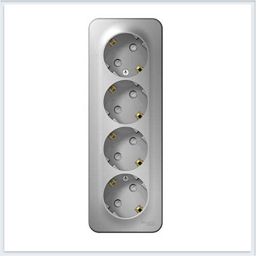Розетка 4-м ОП Blanca 16А IP20 250В с заземл. защ. шторки с изолир. пластиной алюм. SchE, SCHNEIDER ELECTRIC BLNRA011413 (1 шт.)