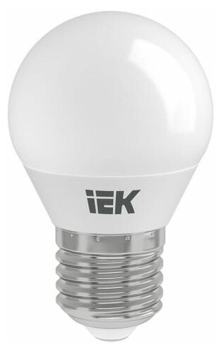 (1 шт.) Светодиодная лампочка IEK G45, мощность 5 Вт, напряжение питания 220 В, цоколь E27, цветовая температура 3000K, теплый белый свет, световой поток 450 Лм, размер 45x84,6 мм