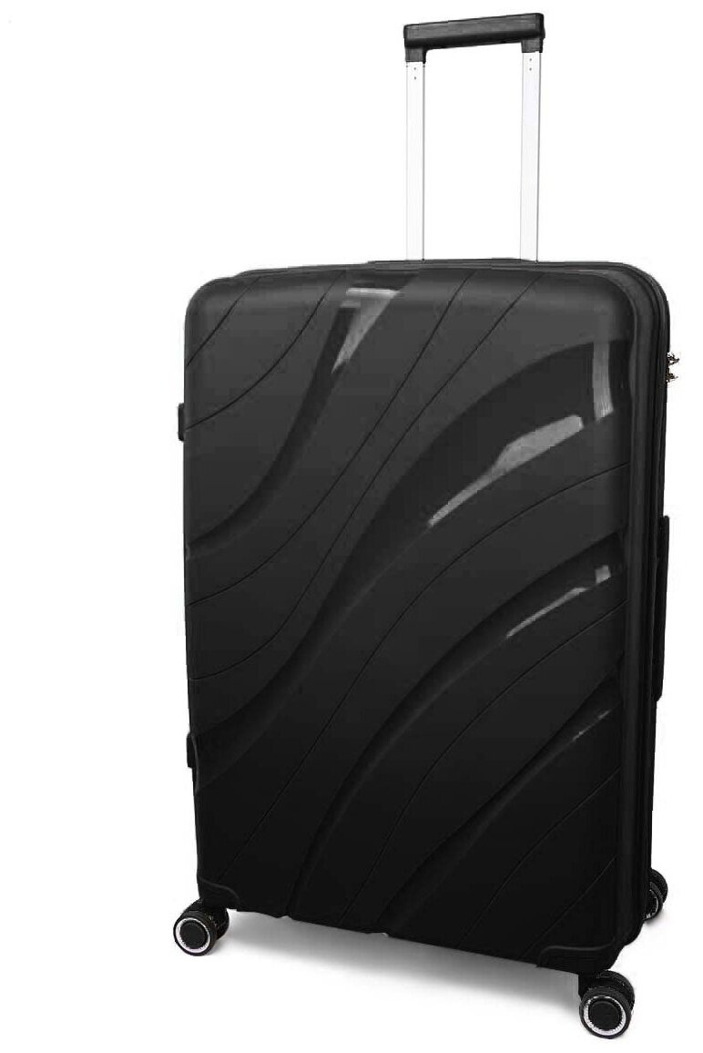Чемоданы Чемодан на колесах дорожный средний багаж для путешествий мужской m TEVIN размер М 64 см 62 л легкий 3.2 кг прочный полипропилен Черная волна