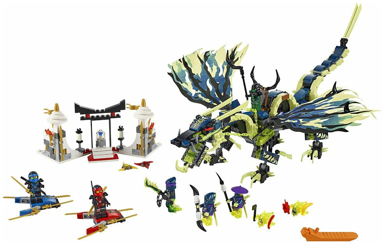 Лучшие цены. Воссоздайте динамичные сцены из любимого сериала вместе с конструктором LEGO NINJAGO 71742 Дракон Оверлорда. Золотой Ллойд вступил в битву с Оверлордом и страшным драконом, но один он никак не справится. Опасайтесь взмывающего в небо дракона, который очень хочет схватить вас своими острыми когтями. Атакуйте Оверлорда катаной, но берегитесь его клинка. Ниндзя должны одержать победу над могучими силами тьмы. Магазины в вашем городе.