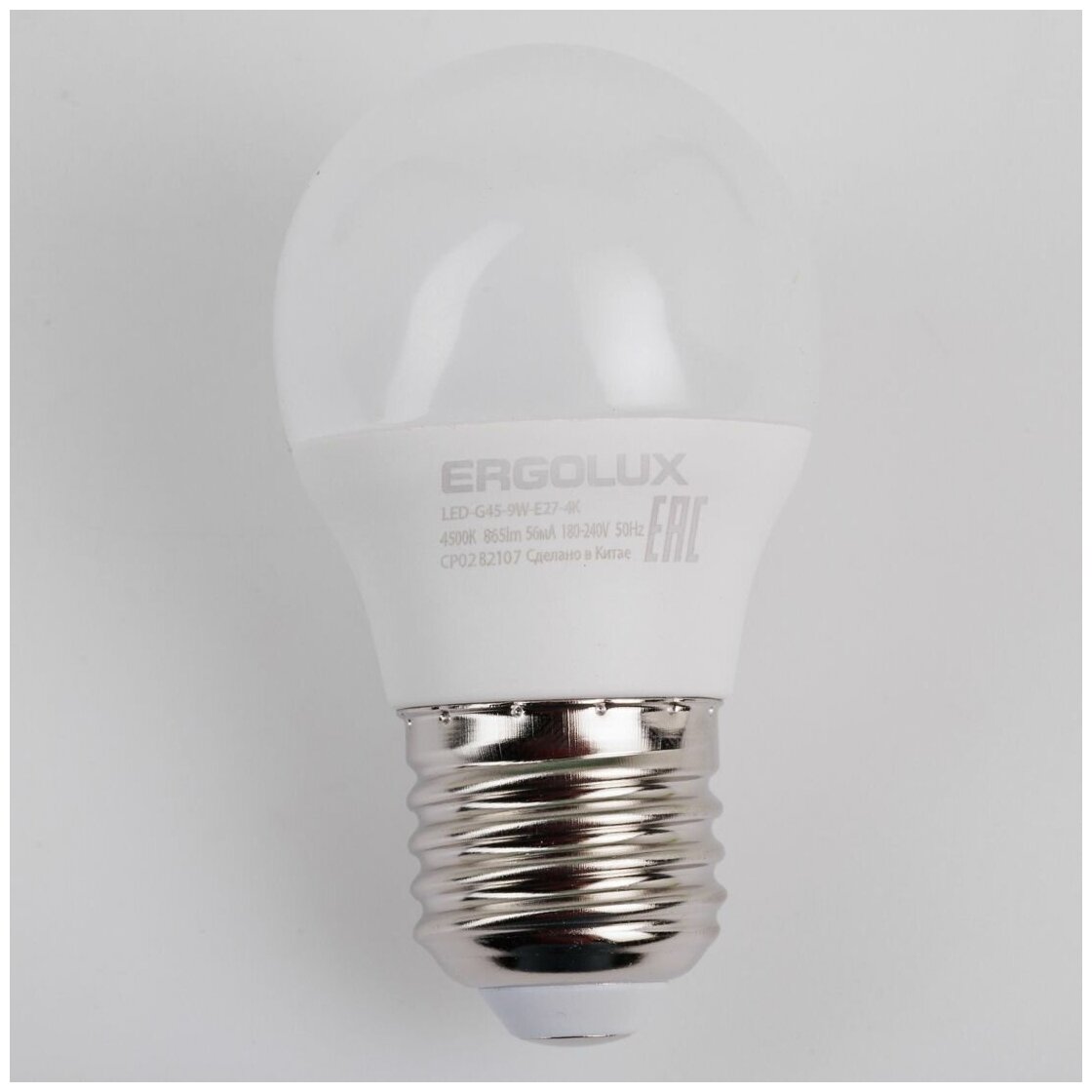 Лампочки Ergolux LED-G45-9W-E27-4K (Эл.лампа светодиодная Шар 9Вт E27 4500K 172-265В)