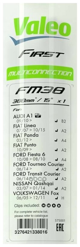 VALEO FM38 щетка стеклоочистителя first fb multiconnection fm38 380mm (575001)