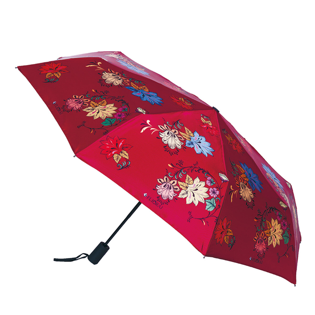 Лучшие цены. Зонт с принтом от итальянского бренда Flioraj Автомат, три сложения, пластиковая ручка с петлёй на запястье, восемь спиц. Особенности: материал верха: поливинил 100%; длина сложенного зонта: 30 см; диаметр купола: 104 см; вес: 380 г. Магазины в вашем городе.