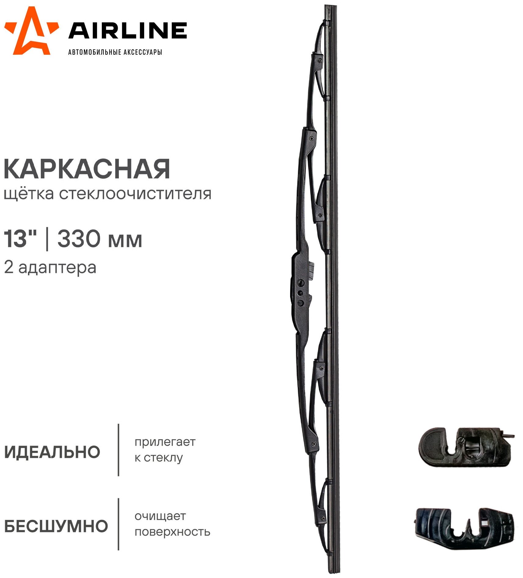 AIRLINE / awbk330 / Щетка стеклоочистителя 330 мм (13) каркасная, 2 адаптера