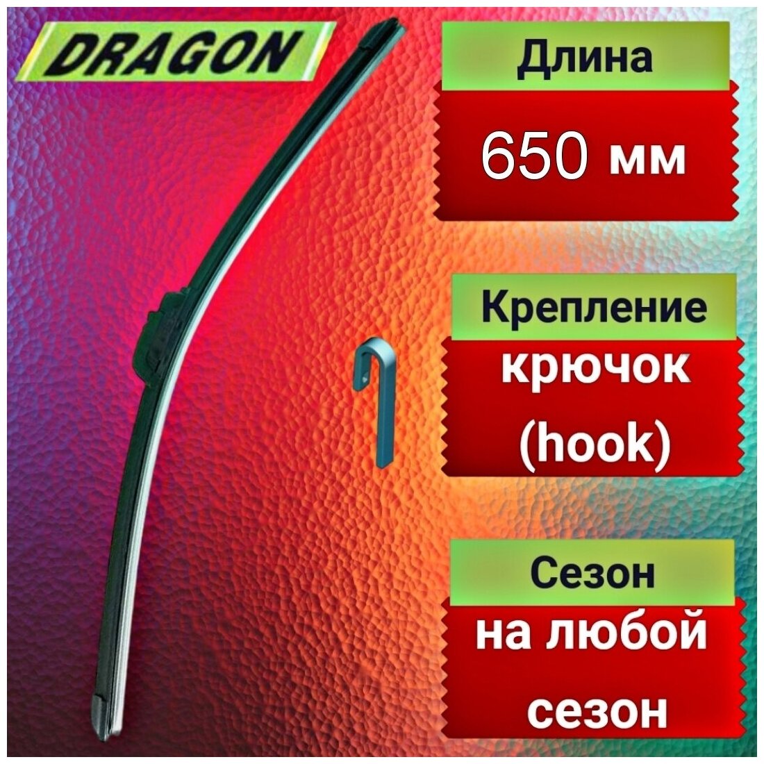 Лучшие цены. Универсальная автомобильная щётка стеклоочистителя для авто бескаркасная всесезонная 650 мм(26') Чтобы правильно подобрать щетки, необходимо знать 3 критерия: длина, конструкция и крепление. Размер дворников - 650мм, конструкция - бескаркасные всесезонные, тип крепления - крючок. Мягкая резина и графитовое напыление на рабочей поверхности щётки стеклоочистителя способствует быстрой и качественной чистке лобового стекла вашего автомобиля и позволяет хорошо очищать поверхность лобового стекла в любое время. Магазины в вашем городе.