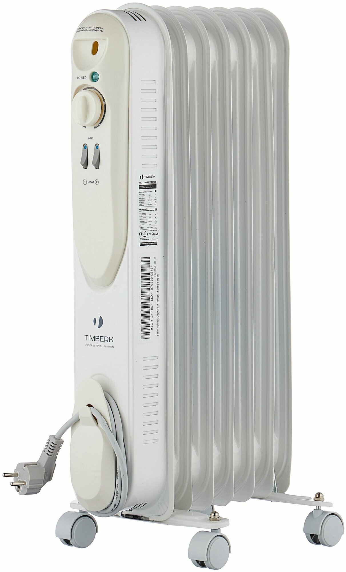 Лучшие цены. Доступный и внешне привлекательный масляный радиатор Timberk TOR 21.1507 SLX имеет три режима работы. Переключение между ними осуществляется при помощи механического переключателя. Максимальная мощность устройства, которое состоит из семи секций, - 1500 Вт. Предназначается для обогрева пространства площадью от 15 до 20 кв. м. Есть термостат, который контролирует процесс нагрева. Имеется индикатор включения/выключения. Для хранения сетевого кабеля предусмотрен специальный отсек. Магазины в вашем городе.