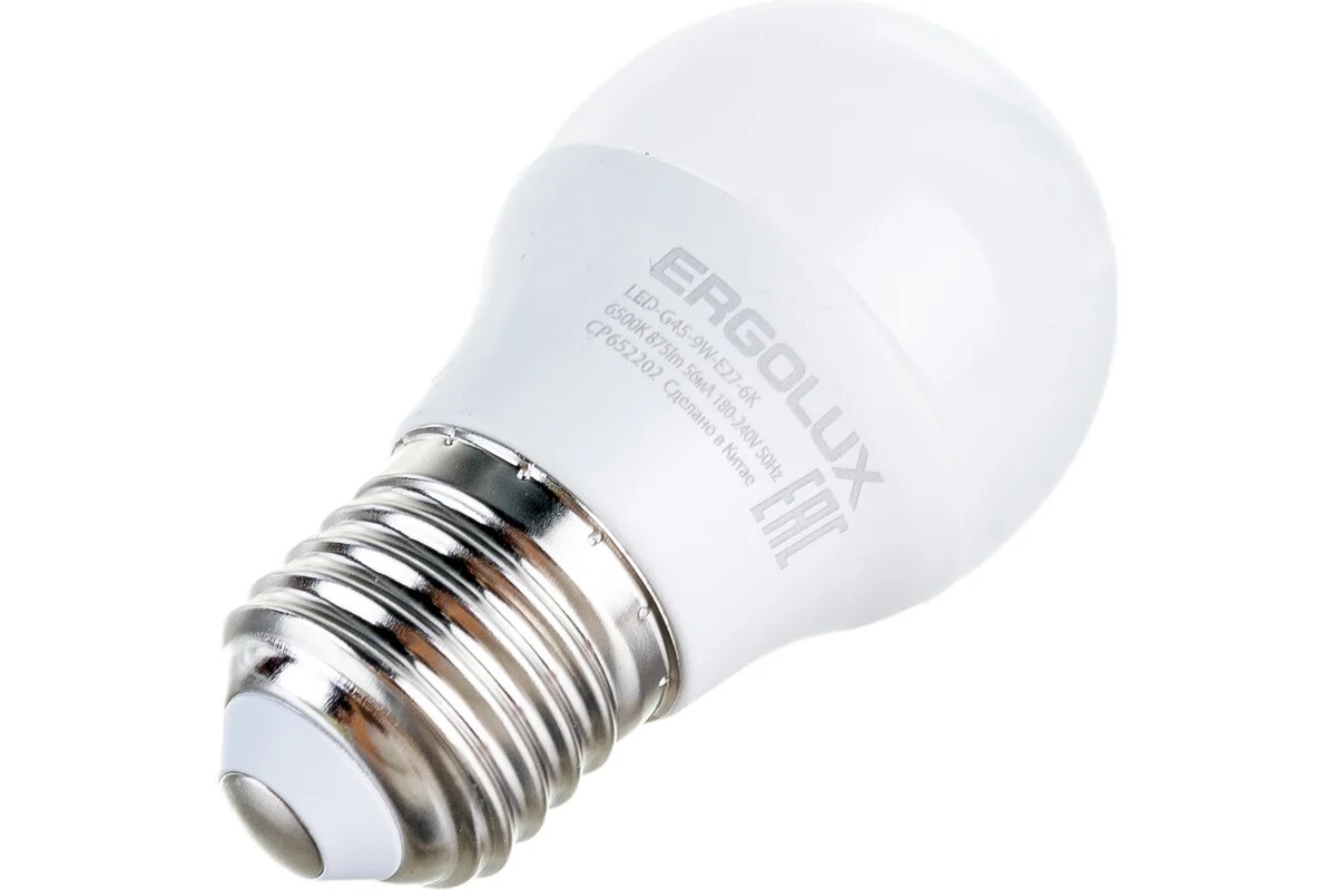 Электрическая светодиодная лампа Ergolux LED-G45-9W-E27-6K Шар 9Вт E27 6500K 172-265В 13178