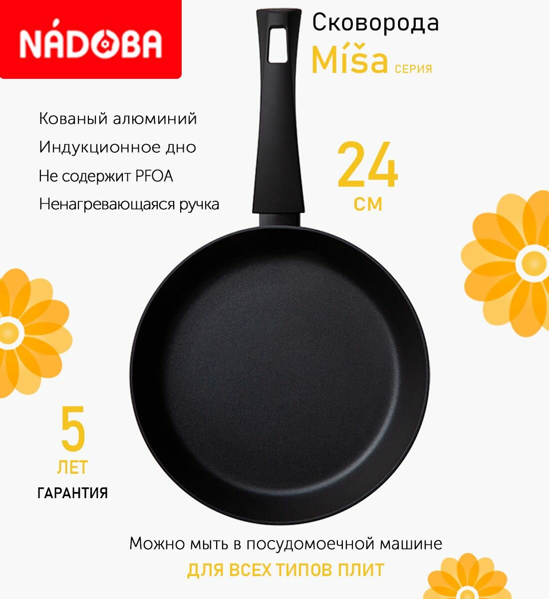 Сковородка Сковорода NADOBA Misa 729818, 24см, без крышки, черный