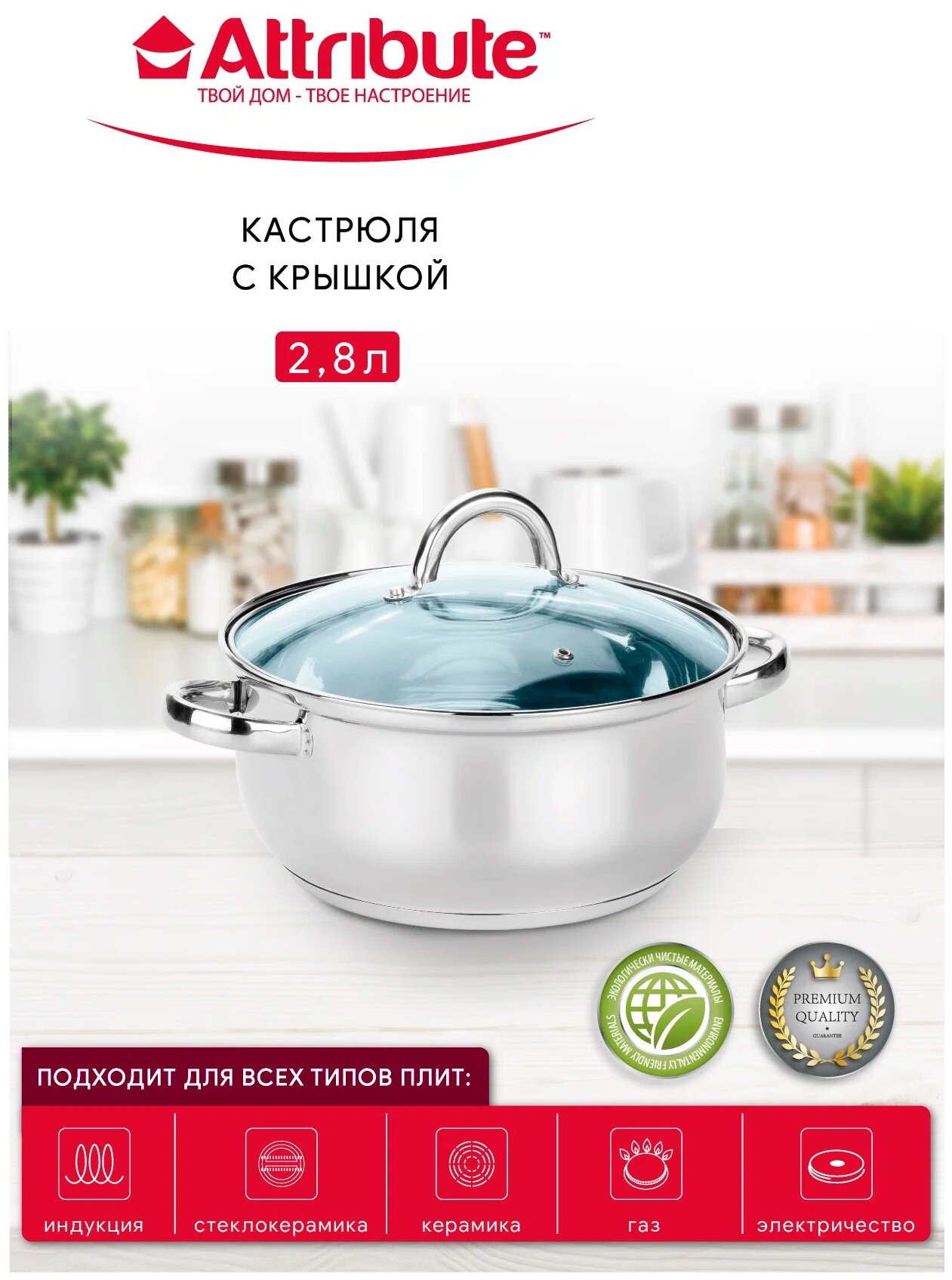 Кастрюля attribute grace 2л 18см нерж.сталь стеклянная крышка
