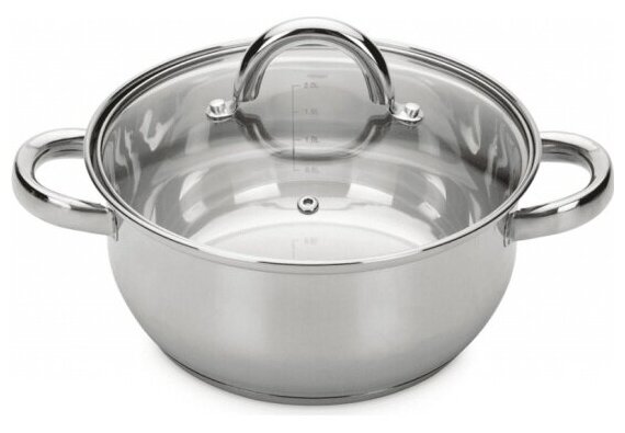 Кастрюля из нержавеющей стали со стеклянной крышкой 2 л, GRACE 18х8.5см, ATTRIBUTE STEEL