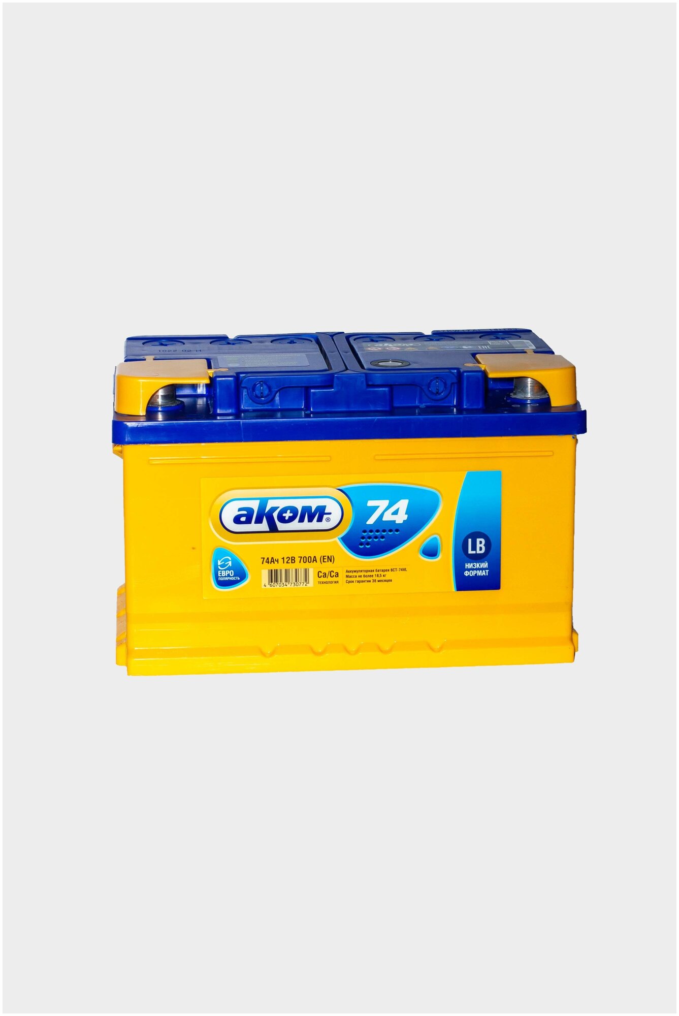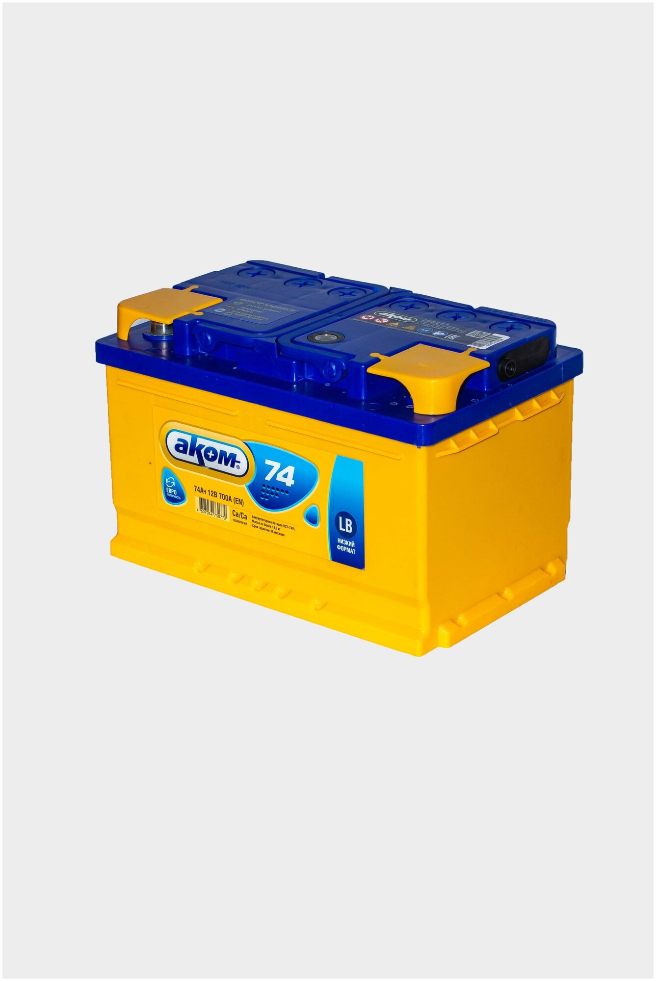 Аккумулятор автомобильный АКОМ LB (Akom) 74 А/ч 700 А обр. пол. низкий Евро авто (278x175x175)