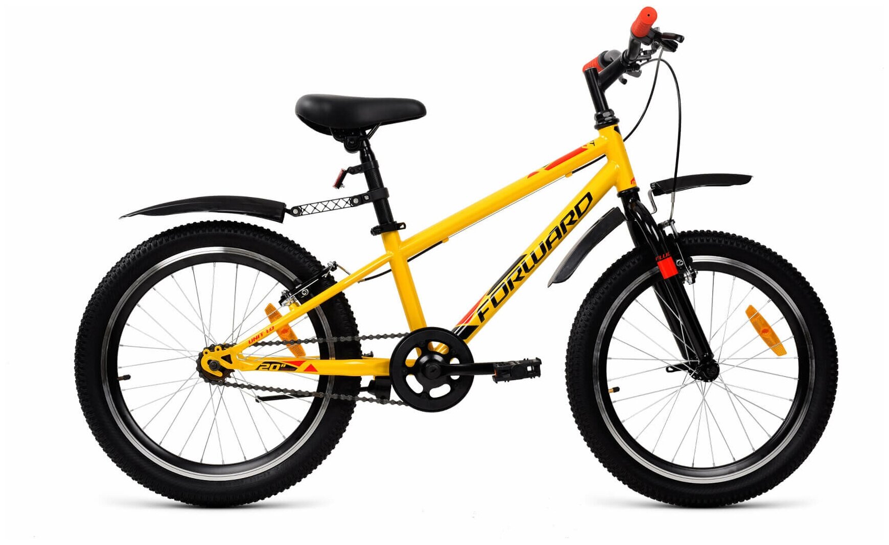 Лучшие цены. Название Велосипед детский FORWARD UNIT 20 1.0 (20" 1 ск. рост. 10.5") 2022, желтый, IBK22FW20055. Категория Велосипеды для взрослых и детей. детский, горный (MTB), , цепной привод, Rigid (жесткий), колеса 20", вес 12.4 кг}. Цвет . Возраст детский. Пол унисекс. Рост ребенка 110-135. Максимальный вес велосипедиста 65 кг. Тип привода цепной. Вес велосипеда 12.4 кг. Материал рамы сталь. Амортизация отсутствует. Конструкция вилки жесткая. Диаметр колес 20". Магазины в вашем городе.