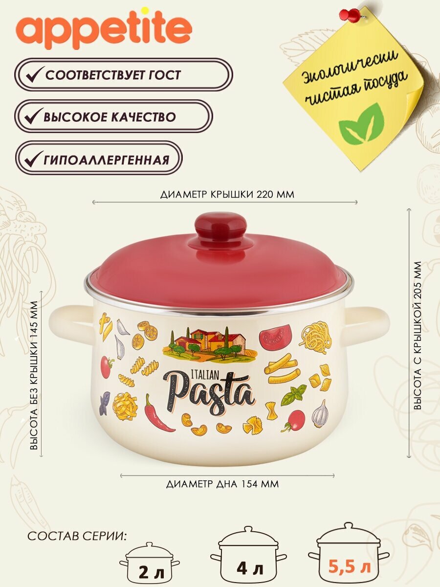 Кастрюли Кастрюля эмалированная Pasta ITALIAN 5,5л ТМ Appetite