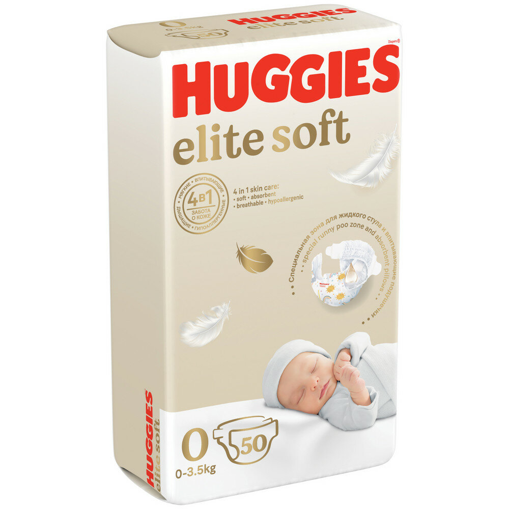 Подгузники Huggies Elite Soft 0+ (до 3,5кг), 50 шт.NEW!
